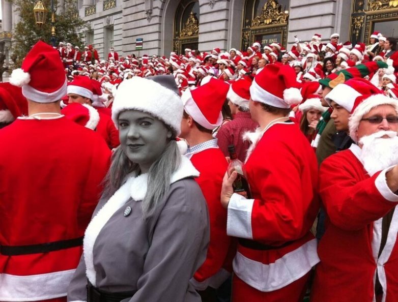 Девушка решила выделиться, и сделала себе чёрно-белый костюм и грим