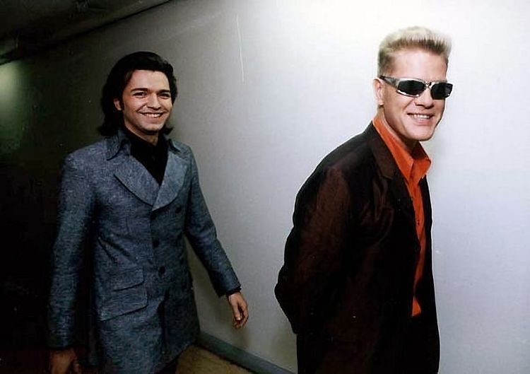 Дмитрий Маликов и Иван Демидов в телецентре Останкино, Москва, 1990-е годы