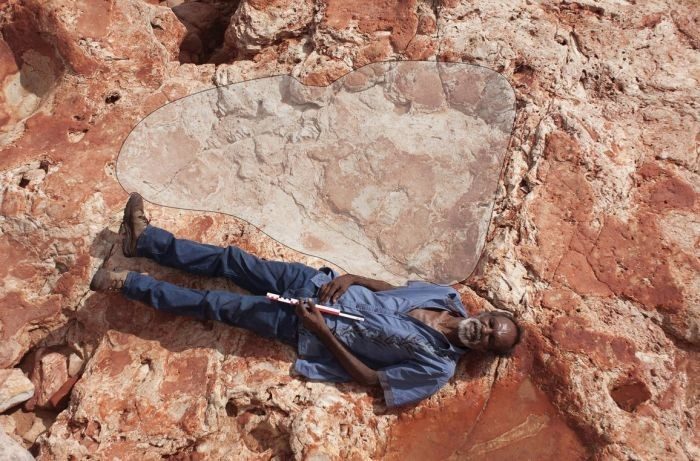 Самый на сегодня большой отпечаток древнего ящера обнаружен в Австралии. След достигает роста среднего человека – 1,75 метра. А оставил его зауропод – представитель растительноядных динозавров из отряда ящеротазовых, обитавших с конца триасового по меловой периоды на всех материках.