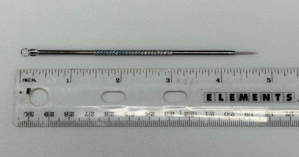 Нашла эту штуку в прачечной. Она полностью металлическая, с очень острым наконечником и петлей на заднем конце