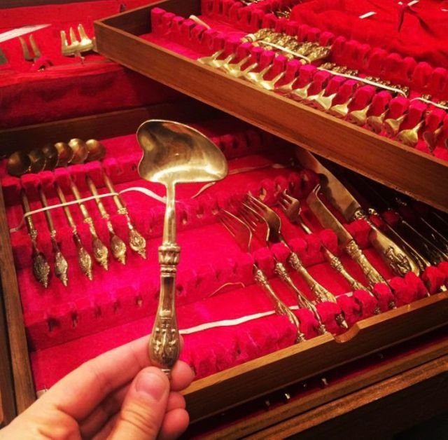 Обнаружил странную ложку в наборе столового серебра бабушки и дедушки. Для чего она?