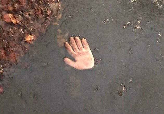 Просто упавшая в лужу перчатка.