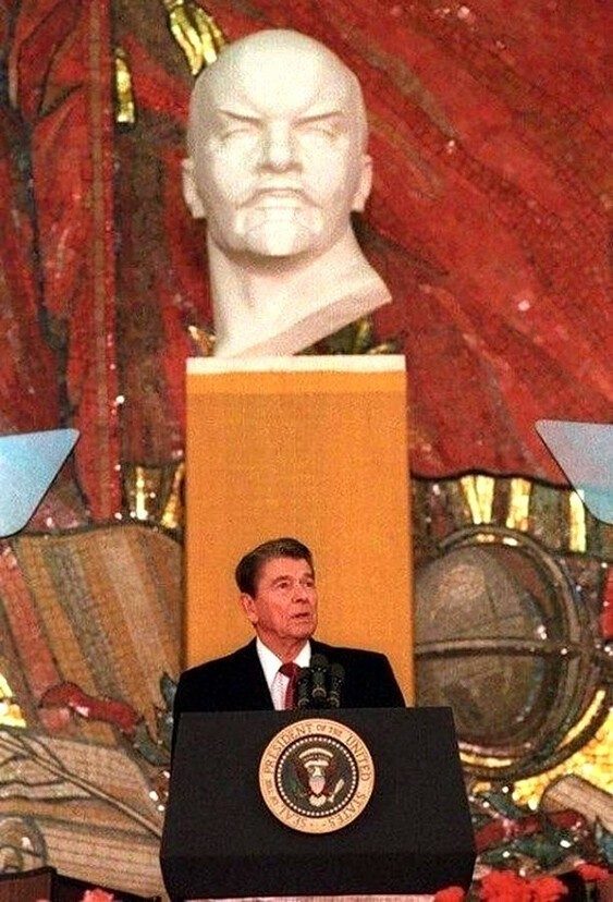 Пpeзидент СШA Рональд Peйган выступaет в актовом залe МГУ, 30 мaя 1988 года