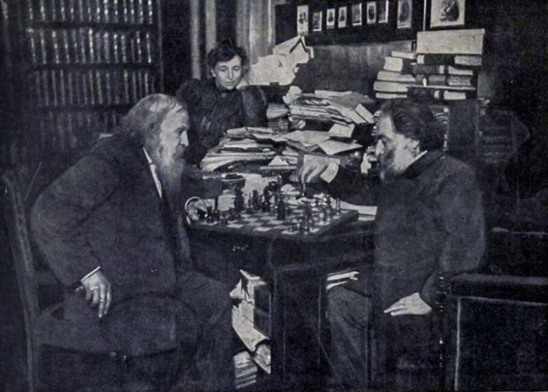 Дмитрий Иванович Менделеев играет в шахматы с Архипом Ивановичем Куинджи. 1904 год