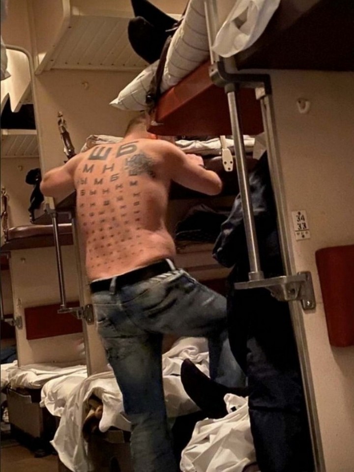 4. Два сапога пара: человек, который попросил набить ударную установку на груди и татуировщик, который так криво её сделал