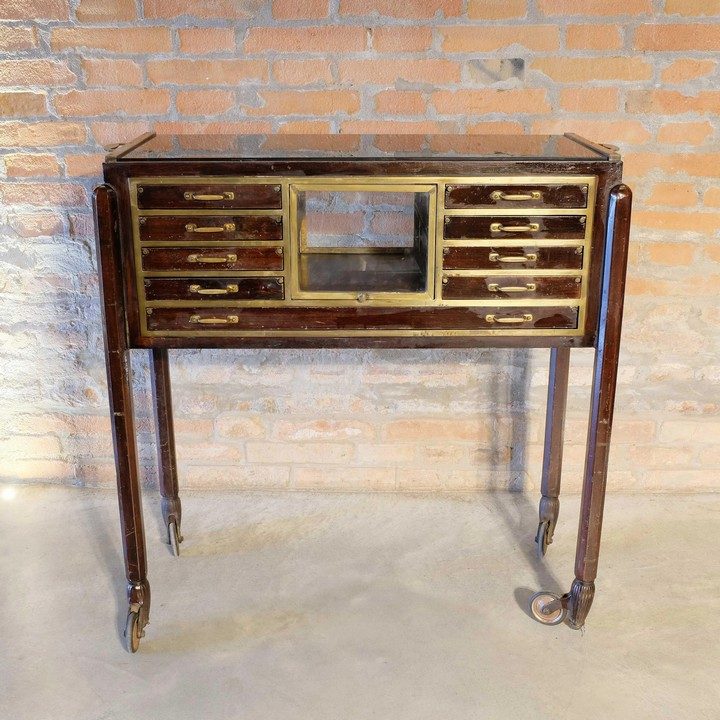 Ответ: “Это винтажный лабораторный шкаф для различных образцов.”