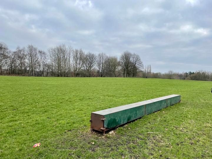 Ответ: “Там хранятся штанги и перекладина от футбольных ворот. Их собирают в день игры.”