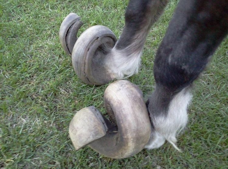 Интересно, почему такие копыта не образовываются у диких лошадей. Разве что потому, что они не стоят в стойлах. А у лошади с фото хозяин заслужил наказание.