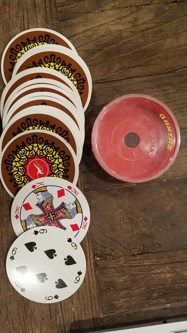 Колода круглых игральных карт Qantas Airway, примерно 1970-е годы