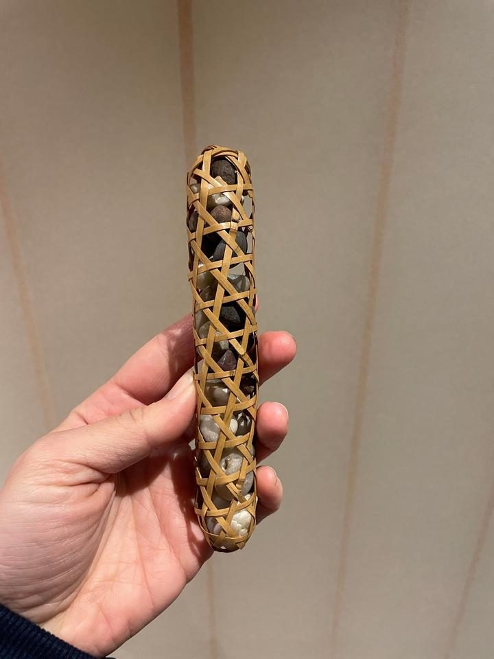 15. “Сплетенный из бамбука каркас с речными камешками внутри. Я купил эту вещь в сувенирной лавке в Киото. Продавец сказал, что это столовый прибор, но я не понял для чего он нужен.”