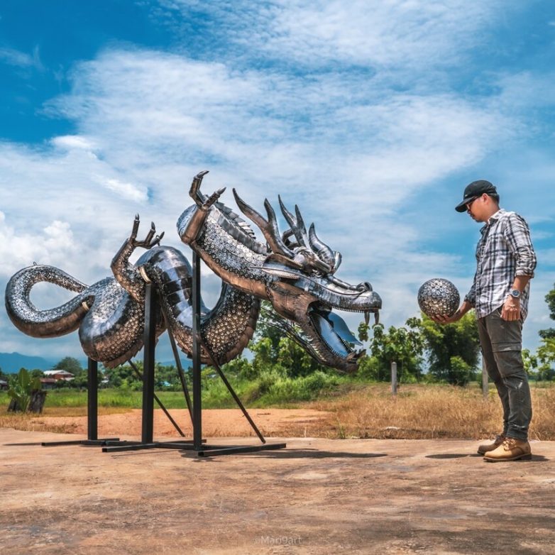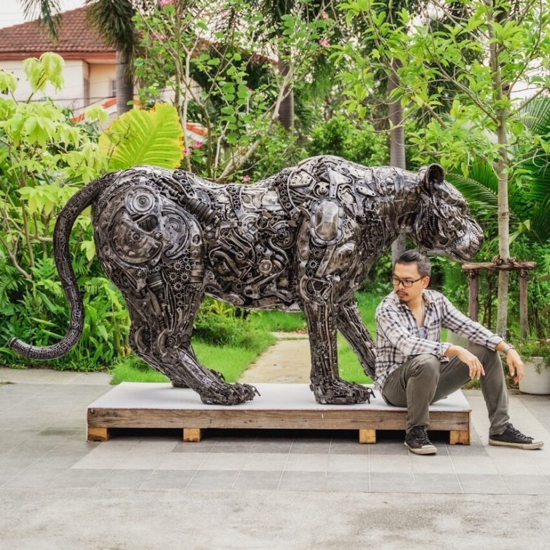 Все скульптуры, сделаны из переработанного металла, и каждая работа является уникальным произведением искусства. Талантливая группа дизайнеров и мастеров «Mari9art» из Таиланда — создаёт каждую скульптуру с нуля, в результате чего получаются единственные в своем роде произведения.