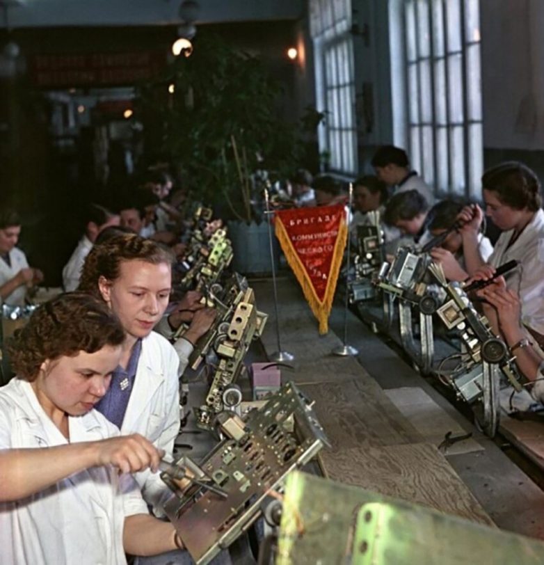Воронежский завод «Электросигнал». Конвейер сборки телевизоров, 1959 год. Фото А. Гостев
