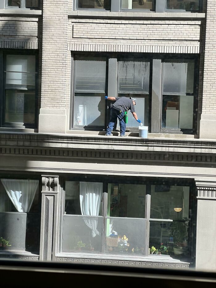 Мойщик окон, работающий на 5 этаже