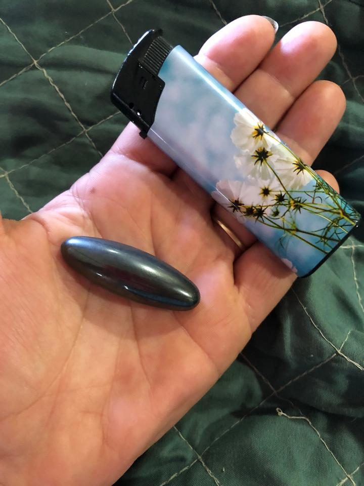 Ответ: “Это магнит из гематита. Обычно продаются в паре. При столкновении они издают необычный журчащий звук.”