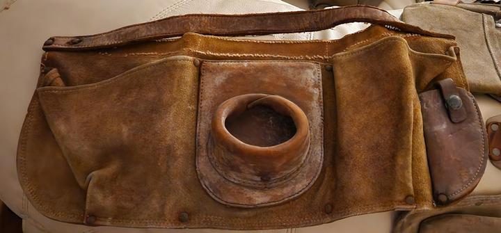 2. “Массивный кожаный пояс с карманами и круглым отверстием посередине”