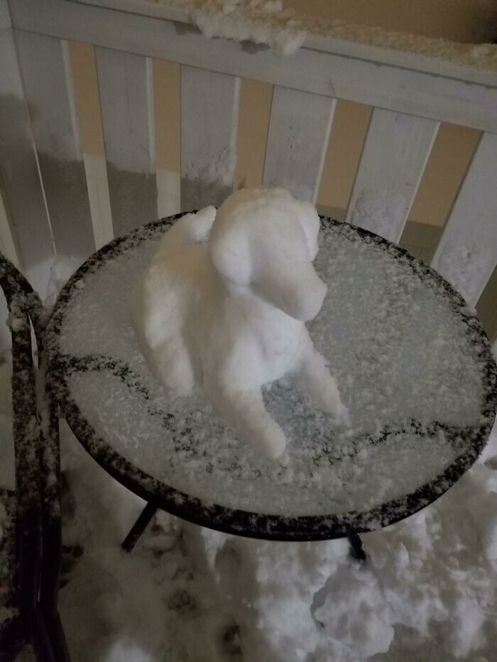 Кто-то слепил собачку из снега