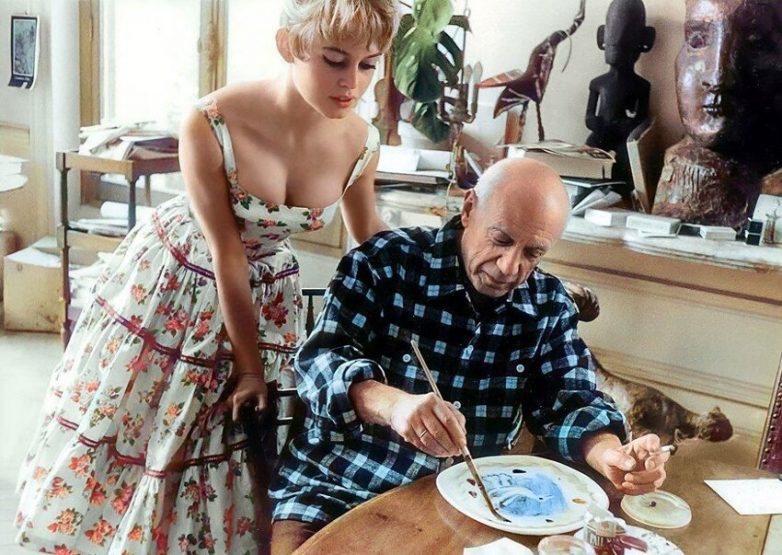 1. Брижит Бардо в гостях у Пабло Пикассо. Вилла Калифорния, Канны, Франция, 1956 год