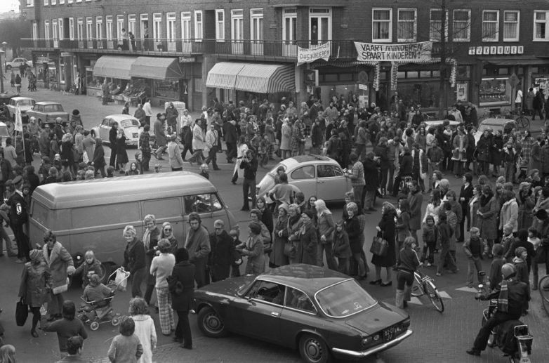 16 марта 1973 года. Улица Рийнстраат, Амстердам. Местные жители протестуют против отсутствия зебры на этом перекрестке. Фото Rob C Croes.