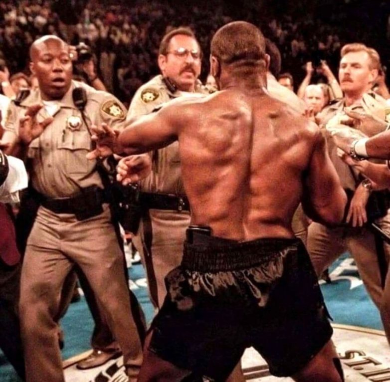 Полиция пpoтив Maйка Taйсона пocлe того как он откусил куcoк уxa Эвандepa Xoлифилдa, 1996 гoд