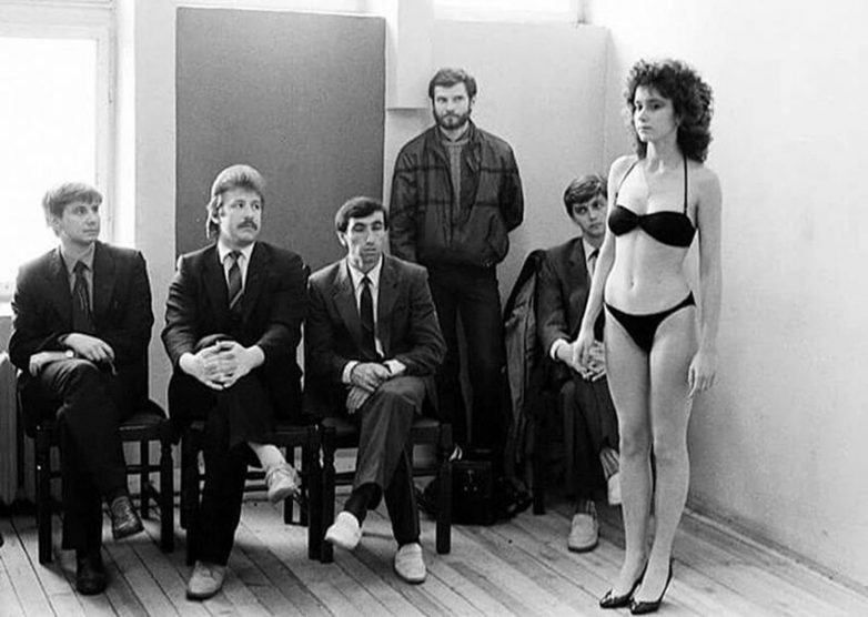 Отбор участниц конкурса красоты представителями райкома комсомола, 1988 год