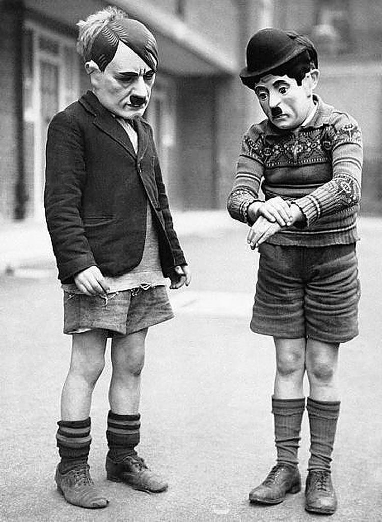 Дети в масках Гитлера и Чарли Чаплина, Лондон, ок. 1940 года