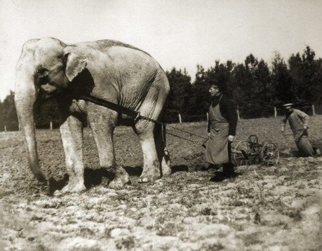 Болгарские крестьяне используют слона для полевых работ, 1900 г.