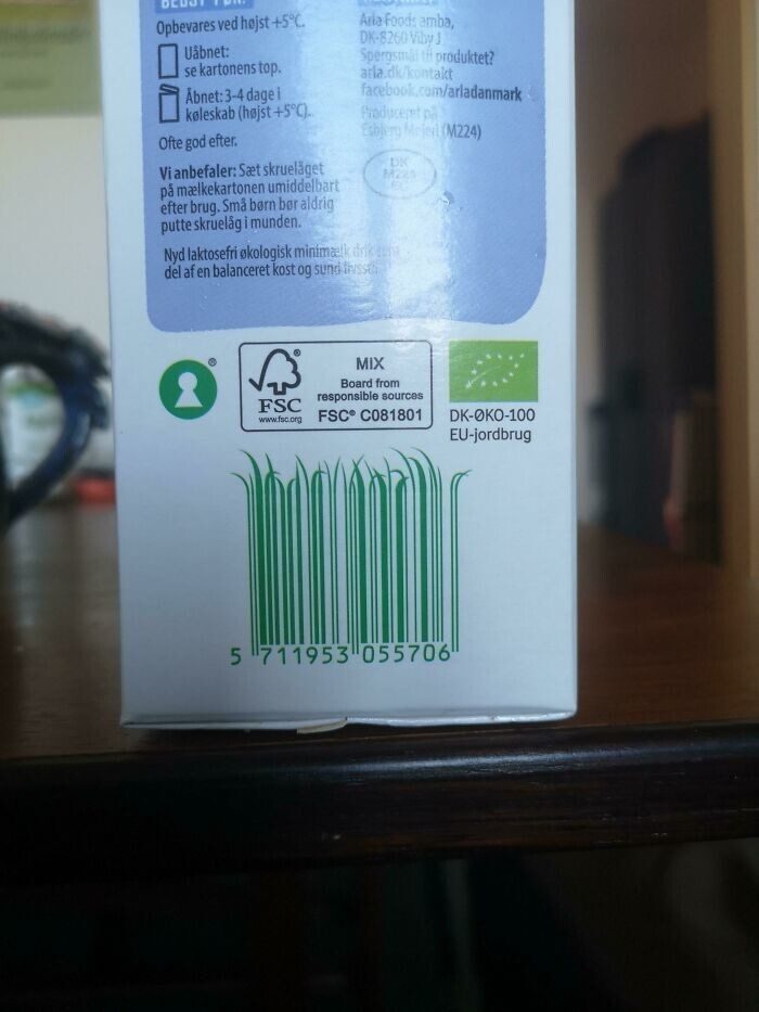 Штрих-код натурального молока в Дании