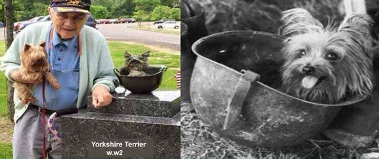 Пёс Смоки был найден в заброшенной траншее в джунглях Новой Гвинеи в 1944 году. Ему приписывают 12 боевых вылетов, он был награжден 8 боевыми звездами и пережил 150 авиаударов. Смоки прожил 14 лет, и в 2005 году ему установили памятник