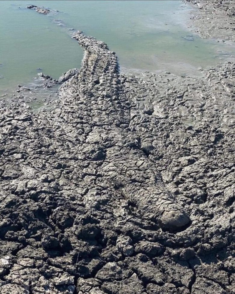 Крокодил, который очень хорошо замаскирован в грязи