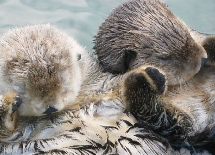 16. Выдры держатся за лапы, чтобы не потерять друг друга во время плавания