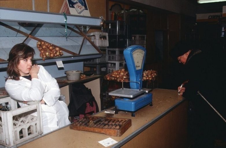 В канун Нового года в этом московском магазине можно было купить репчатый лук, 30 декабря 1990 год.