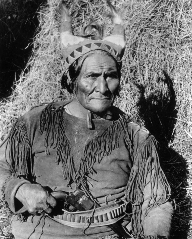 Наверное, это самый легендарный вождь. Был предводителем апачей и одинаково успешно бил и американцев, и мексиканцев. А в 1886 году попал в плен и прошёл все круги ада. Сначала его долго избивали — чтобы сломить волю и заставить подчиняться. Он был фигурой знаковой, поэтому его хотели использовать для пропаганды.