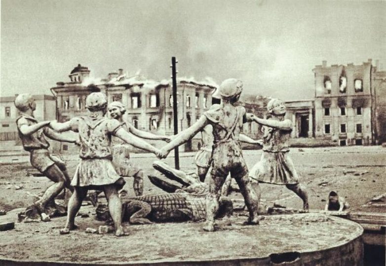 Фонтан «Бармалей» или «Детский хоровод» в Сталинграде, фото Э. Евзерихина, 23 августа 1942 года