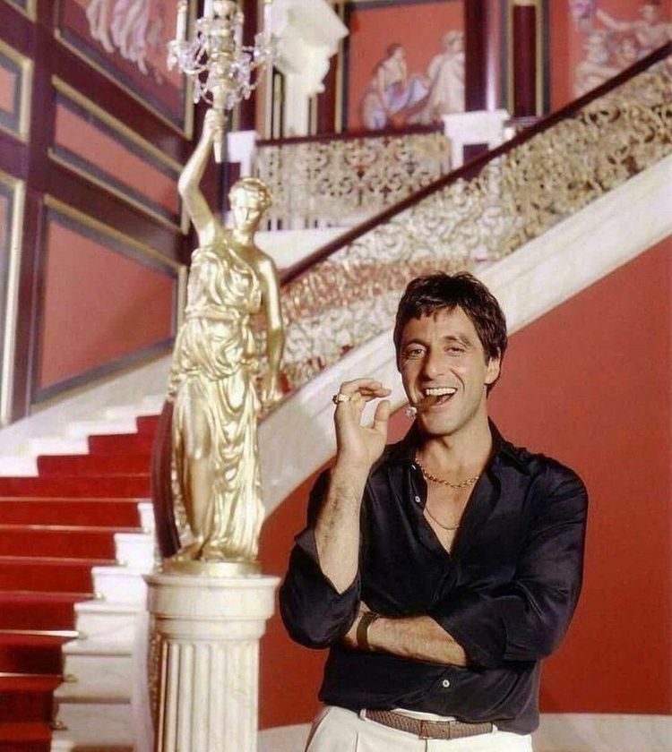 Аль Пачино во время съёмки фильма «Лицо со шрамом», 1983 год