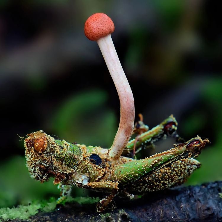 Это фото можно описать также, как и саму природу — красиво и жестоко. Кстати, это фото было сделано не фотографом дикой природы, а калифорнийским микологом Аланом Рокфеллером, который сообщил, что данный гриб называется Paraisaria amazónica (ранее Ophiocordyceps amazónica), и что это было снято в феврале 2020 года в Пастасе, Эквадор