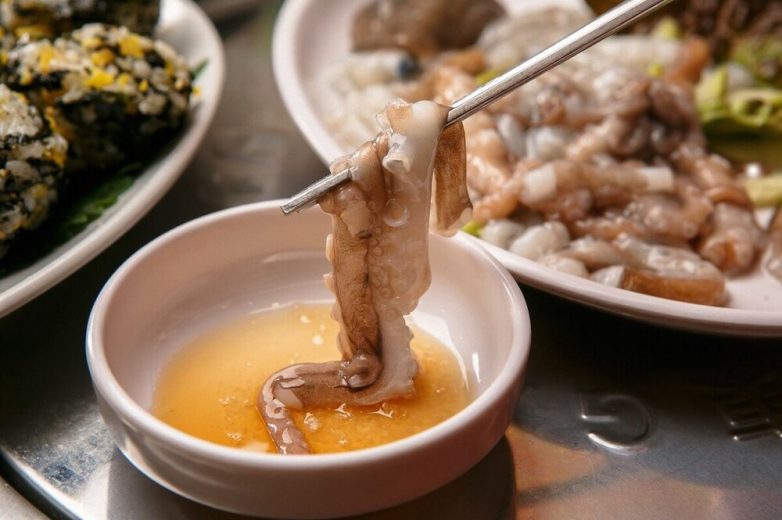Извивающиеся щупальца осьминога, которые недавно от него отделили. Щупальца сами по себе не опасны, однако при употреблении этого блюда осьминог может присосаться к горлу и перекрыть дыхательный проход, что может привести к летальному исходу. Поэтому необходимо быть крайне осторожным, когда пытаетесь откусить щупальца.