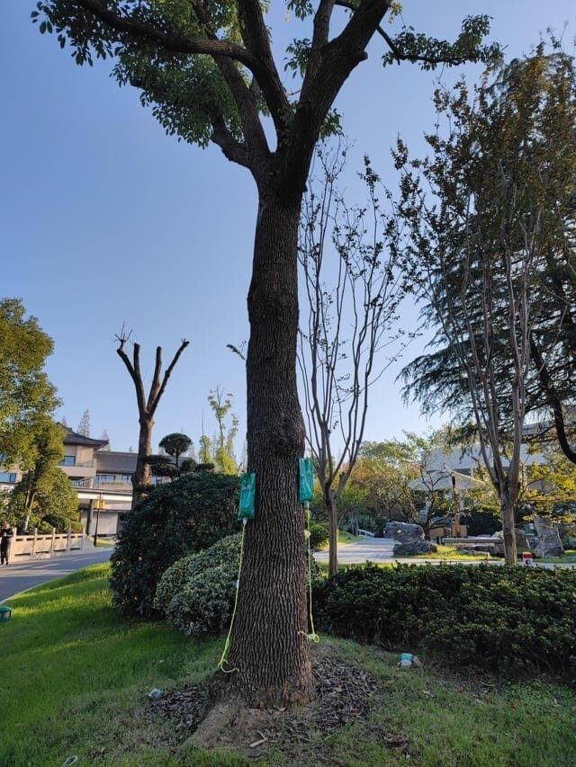 В некоторых городах Китая на деревья вешают специальные капельницы с витаминами