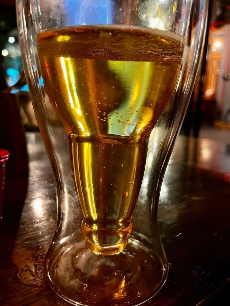 16. Внутренняя часть пивного бокала выполнена в виде перевёрнутой бутылки