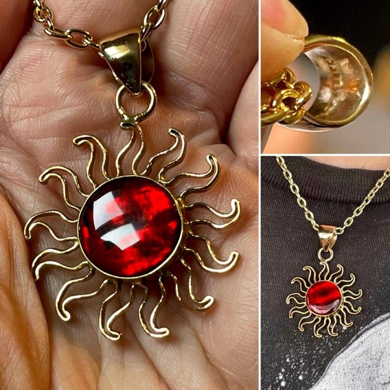 Я выяснила, что это кулон Charles Albert Red Abalone Alchemia Sun Pendant, который продаётся по цене 36 долларов.