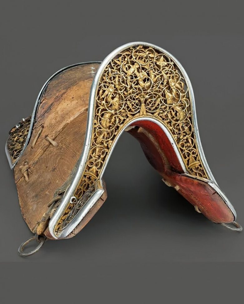 6. Седло, искусно украшенное золотыми вставками. Тибет, 15-17 век
