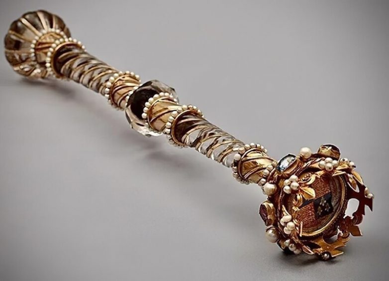 23. Скипетр лорда-мэра Лондона из золота и каменного хрусталя. Подарен Генрихом V в период с 1415 по 1421 год в знак признания предоставления городом 10 000 марок, которые помогли одержать победу при Азенкуре