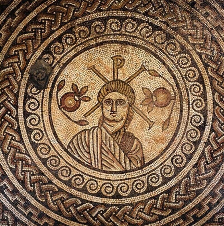 13. Рондель с римской виллы, Сент-Мэри, Дорсет, 4 век н. э., с мозаикой, изображающей Христа