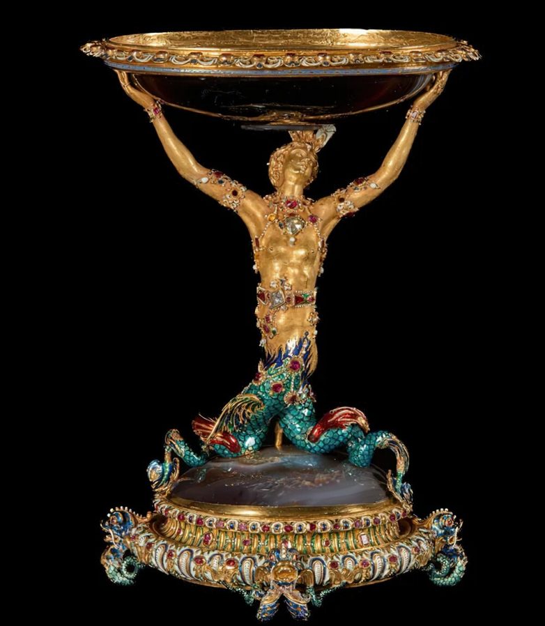 17. Золотая чаша-солонка «Русалка», украшенная 184 рубинами, бриллиантами и двумя кусочками агата. Франция или Флоренция, XVI век