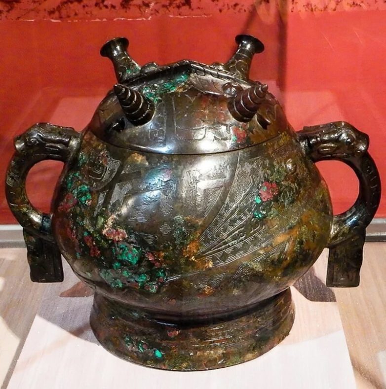 8. Бронзовый ритуальный сосуд с четырьмя рожками. Китай, династия Западная Чжоу, 1000-900 век до н. э. Использовался для подношения пищи духам умерших
