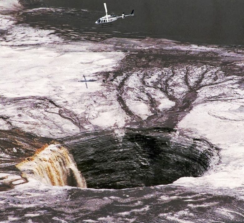 12. Вертолёт над воронкой шириной 40 метров на заводе в Новом Уэльсе, Австралия. 29 июня 1994 года