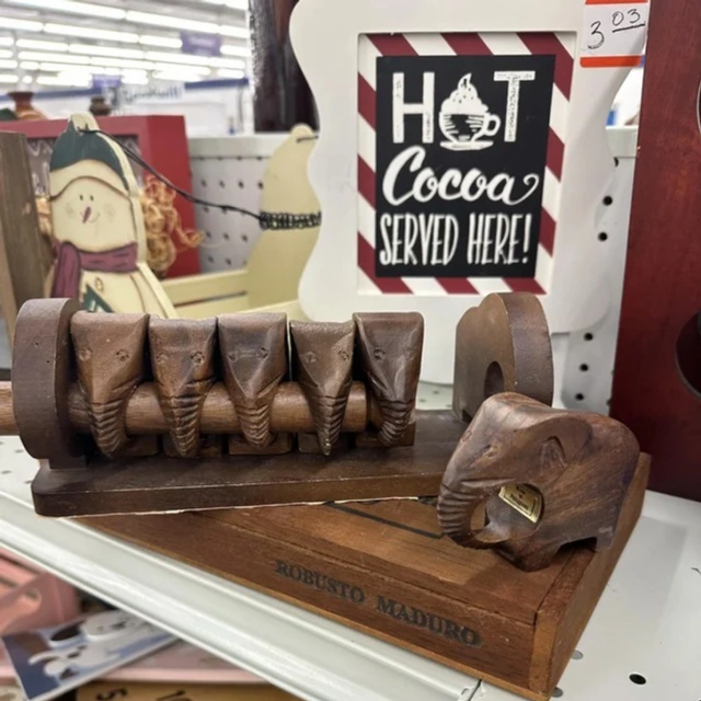 «Деревянные слоны с продетым через них стержнем. Стержень выдвигается, а слоны снимаются»