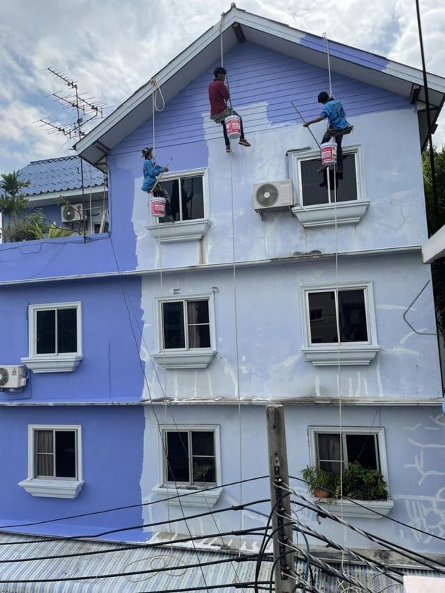12. Покраска домов выглядит так — не очень безопасно
