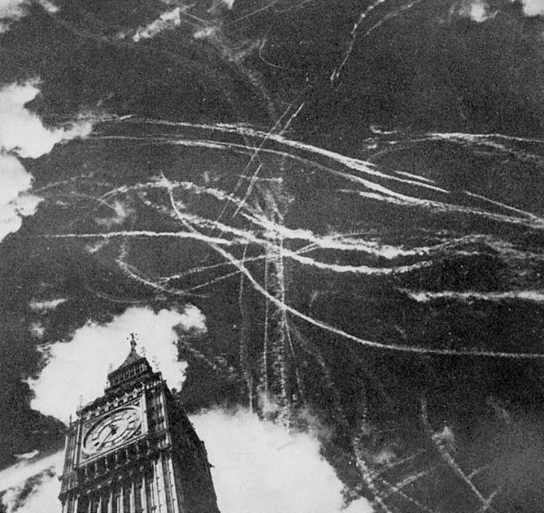 Следы борьбы английских и немецких ВВС в небе Лондона, 1940 год