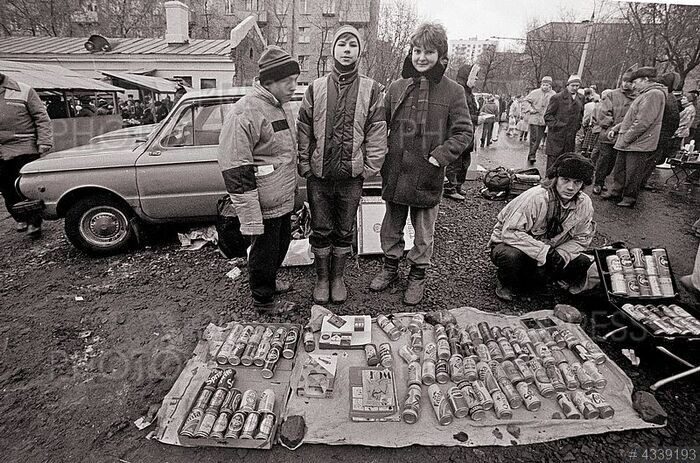 Торговля с рук у 'Детского мира' в Москве, 1992 год.