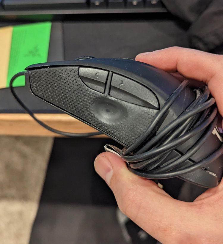 Вмятина от большого пальца на компьютерной мыши после нескольких лет использования